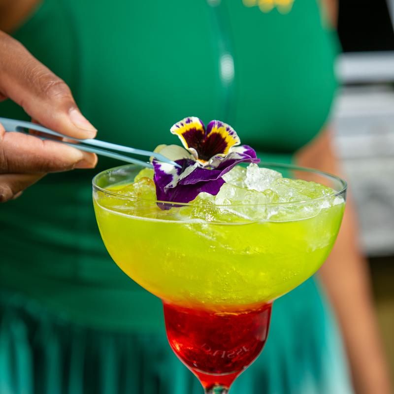 Bacardi Coconut, Tito's Vodka, Midori Melon, Lemon, Lime, Simple Syrup, Grenadine